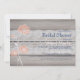 7 x 5 Rustic Floral e Lace Chá de panela. Coral floral e azul sobre fundo de madeira rústica. Personalizável. Parte de uma coleção de papéis de carta de casamento de Whimzy_Designs.