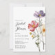 Este chá de panela elegante rústico apresenta flores silvestres elegantes de aquarela, em tons vermelhos, violetas e creme. Perfeito para primavera ou chá de panela de casamento de verão. Um bonito script moderno é contrastado com um tipo clássico de serifa.