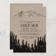 Este chá de panela rústico de montanha de madeira é perfeito para um chá de casamento de floresta. A design da natureza inspirou a silhueta de uma floresta de pinheiros e montanhas em papel kraft falso. Por favor, observe que isto não está impresso em papel kraft real. É um gráfico de alta qualidade feito para parecer papel kraft.