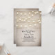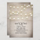 Chá de panela rústico charmoso com textura de fundo vintage e luzes de cordas suspensas. Bonita, elegante e rústica convidam perfeito para o seu celeiro ou chá de panela exterior do país.