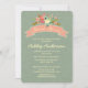 O chá de panela rústico das flores | por Elke Clarke projeta flores tiradas do © mão bonito no pêssego, o coral, o rosa, o verde da hortelã, o amarelo, o verde e o creme e uma bandeira cor-de-rosa coral com as palavras "chá de panela" na tipografia escrita na moda do roteiro. O fundo do papel de embalagem do verde da hortelã do vintage é um efeito da foto é imprimido no estoque de papel básico como mostrado ou escolhe outras opções de papel. Outro colore disponível.