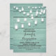 Chá de panela romântico com fundo de madeira de chalé rústica e luzes de cordas com frascos pendurados de mason. Para o chá de panela azul ou lacaio!