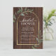 Convites de chá de panela Rústicos Modernos, Elegantes de Madeira Eucalyptus Greenery com galhos elegantes modernos e um falso arco cólico de folha de ouro em volta de seus detalhes. Galhos Eucalyptus da Costa Oeste da Califórnia enquadram a design e a parte de trás é uma madeira rústica. Perfeito para o seu evento de luxo. Entre em contato conosco em cedarandstring@gmail.com se precisar de assistência com o design ou produtos correspondentes.