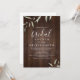 Folhas botânicas de cor aquática modernas sobre fundo de madeira de celeiro escuro, com roteiro e texto modernos, cartões de chá de panela simples e elegantes para casamento de jardim botânico rústico no outono e no inverno. Veja todas as peças correspondentes na coleção.