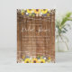 Chá de panela Rústico de Cordas de Girassol. Flores florais de cor aquática, luzes de cordas, em um fundo de madeira rústica. Perfeito para um chá de panela country.