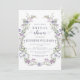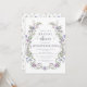 Convite sofisticado para um chá de panela, mostrando representações requintadas de cor d'água de flores silvestres lavandas roxas, ideais para uma celebração rústica em primavera ou verão.