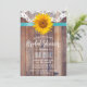 Chá de panela Rústico De Girassol Lacrado De Madeira Turquesa De Madeira Lacrada Convites De Fita.