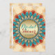 Convites de chá de panela personalizados de 5" x 7": estilo country, Cottage, Folk, convites de chá de panela design de inspiração boêmica com design decorativa em terras suaves cremosas / aqua e vermelho - todo o texto no verso é totalmente personalizável - serviria perfeitamente para um jardim de algodão, deusa, casamentos modernos temáticos do país, totalmente personalizável - personalizaria para torná-lo seu tipo Convites & exclusivos | designs alternativos únicos para ocasiões especiais.