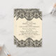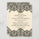 Uma imagem de renda preta como uma borda de cima e de baixo empresta uma impressão feminina, mas atraente para este chá de panela. impressões de texto de convite em um plano de fundo de creme simples. O revestimento do local é repetido ao contrário. Perfeito para um chá lingerie! Disponível em cores alternativas com produtos correspondentes. NOTE: NÃO HÁ LACE REAL USADA NESTE PRODUTO. É UMA ILUSTRAÇÃO DE LACE.
