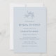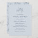 Chá de panela simples. Romântico e eterno, este chá de panela azul empoeirado apresenta rosas florais de arte de vintage que podem ser usados em qualquer época de casamento. Adicione um toque de elegância moderna e clássica ao seu dia especial com estes na moda e belos convites. Texto de marinho sobre uma cinza azul com um adorável padrão de coordenação no verso.
