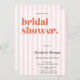 Este chá de panela simples e boho apresenta a tipografia retrógrada em um fundo listrado rosa. Esses convites de chá de panela são facilmente personalizados para o seu evento simplesmente adicionando seus detalhes.