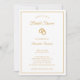 Um elegante convites de chá de panela branco e dourado com um simples logotipo de anel de casamento. Personalize adicionando o nome da noiva-a-ser e os detalhes da festa.