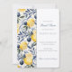 Este chá de panela é um belo prelúdio à alegria e beleza do próximo casamento, com um design radiante que combina limões iluminados por sol e azeitonas azuis profundas com a elegância eterno dos padrões azulejo. O lado esquerdo do convite é uma exuberante fruta e folhagem de citros, criando uma sensação nova e convidativa. O lado direito oferece um fundo branco e limpo onde os detalhes do evento são apresentados em um roteiro sofisticado, anunciando a celebração da futura noiva. Este cartão é perfeito para dar o tom de um chá de panela tão brilhante e alegre quanto elegante, adequado para encontros em uma casa de família, um jardim, ou até mesmo um lugar de campo fraco.