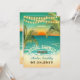Palmeiras e lanternas armam o pôr do sol do oceano e a costa arenosa neste adorável convite para Chás de praia. Personalize o texto moderno, na moda, na frente e atrás, com as informações do seu casamento.