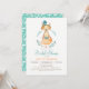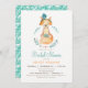 Teal e chá de panela de Raposa Laranja. O convite apresenta raposa de floresta com padrão de folha atrás.