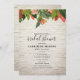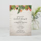 Um chá de panela de casamento de praia com uma imagem de flores tropicais e folhas sobre um fundo de tijolos brancos.