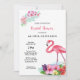 Este convite festivo é ideal comemorar um chá de panela com um verão, tropical, o Luau ou tema havaiano. Caracteriza uma ilustração colorida com um flamingo e umas flores e umas folhas tropicais. Chique, divertimento contudo convite elegante.