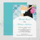 Comece seu evento com nossa tenda noiva da silhueta e noivo em um Chá de panela de fundo floral de turquesa tropical. Apenas personalize nosso convite com suas informações de casamento e você está pronto para ir. ©Jessica Weible
