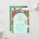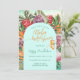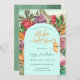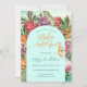 Flores tropicais e folhagem rodeiam uma porta arcaica para se divertir. Cores de folhagem verde abundante com flores laranja e rosa criam um humor empolgante para a celebração de um evento paraíso nobre. A inscrição e o reverso estão em um verde tropical profundo enquanto o evento é destacado em laranja de Mango. Personalize todo o texto.