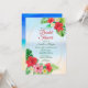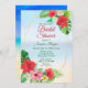 Esse chá de panela botânico tropical geométrico apresenta flores fotográficas de hibisco vermelho e rosa e plumeria branca, que combinam bem com as folhas tropicais de aquarelas, e a estrutura geométrica dourada. Um fundo de praia tropical completa a aparência, perfeita para comemorações de verão!