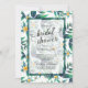Lindas flores amarelas do hibisco com a selva verde chá de panela com uma bela fonte de script elegante e uma correspondência floral correspondente com as costas. Perfeito para um primavera ou chá de panela tropical de verão.