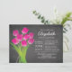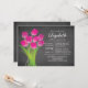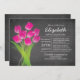 Chá de panela Tulipas Rosa-Chalkboard moderno, com um fundo de quadro popular, com um buquê bonito de lindas tulipas cor-de-rosa. chá de panela perfeito para um primavera ou chá de panela de verão.