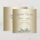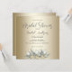 Este Chá de panela macio e elegante foi projetado com um buquê de tulipas brancas com aglomerados de verde e realces de ouro sobre fundo dourado. O texto frontal inclui o nome da noiva, a data do evento, a hora, o local, o RSVP e as Informações do Registro. O verso é decorado com realces dourados e tulipas brancas florais. Para personalizar, basta inserir seus detalhes em nosso modelo fácil, substituindo o texto de exemplo. Certifique-se de ver as peças adicionais que combinam com esta Coleção de Casamentos Dourados com Tulipas Brancas.
