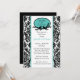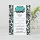 Comece seu evento bem com nosso Chá de panela apresentando uma bela estrutura oval com pássaros em galhos com Damasco branco e preto com corte de turquesa. Combinação de cores preto e branco de tendência. Apenas personalize nosso convite com suas informações de casamento e você está pronto para ir