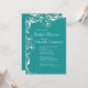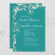 Nosso belo chá de panela azul turquesa é o início perfeito para seu chá de panela primavera, chá de panela de verão, chá de panela de outono ou chá de panela de inverno que sua noiva e hóspede irão amar. Nossos convites de chá de panela elegantes apresentam um floreio floral branco vintage em um fundo azul turquesa e tem um fundo correspondente! Visite nosso compro para ver opções de cores adicionais neste convite para chás de casamento.