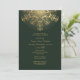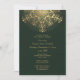 Floco de neve Dourado no chá de panela casamento no inverno verde que apresenta um floco de neve ouro sobre fundo verde. Esta design personalizada é uma modelo completamente personalizável e faz parte de um jogo perfeito para um casamento de dezembro de inverno ou de Natal.