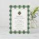 Chá de panela com um histórico clássico de xadrez de búfalo verde e uma árvore de natal verde. Estes convites de moda são perfeitos para um chá de inverno. Personalize com suas informações para que a noiva seja. Clique em "clicar para personalizar mais" para alterar o estilo, o tamanho ou a cor da fonte.