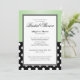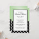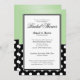 Esses sofisticados Convites de chá de panela de dois lados são projetados com bolinhas brancas padrão sobre preto e um gradiente verde. Escolha seu tipo de papel. Linen seria uma escolha perfeitamente elegante para esta design. O texto é personalizável e muito descritivo e adequado.