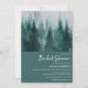 Design de Chá de panela com pinheiros de enfumaçado, rusticidade, com uma floresta de pinheiros de aquática e uma disposição tipográfica moderna com fontes elegantes. O texto pode ser facilmente personalizado para um único design único para seu dia especial