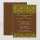 Comece o seu evento bem com o nosso Chá de panela com uma bela cor damasco verde num fundo castanho rico. Combinação de cores azul e castanho. Apenas personalize nosso convite com suas informações de chá de casamento e você está pronto para ir. Disponível em outras combinações de cores em www.celebrateitinvites.com