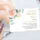 Um fundo branco chic. Decorados com ouro-rosa e folhas de eucalipto cor-de-rosa-esbranquiçada, flores de rosa e cor-de-rosa-esbranquiçada, galhos, verde-verde e um cinzeiro de ouro falso. Personalize e adicione o nome da noiva a ser e os detalhes da festa. Letras pretas e ouros coloridas. Traseira: cor de fundo rosa dourada.