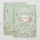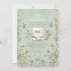 Este Chá de panela do Tea Party apresenta uma xícara de chá doce enfeitada com flores silvestres em um claro fundo verde com uma delicada vinha folhada em ambas as bordas. Todos os detalhes do evento podem ser editados clicando em "personalizar este modelo". As cores incluem rosa vermelho, sábio verde, laranja, rosa e branco. O verso tem a mesma cor de fundo e os mesmos detalhes da vinha folheada.