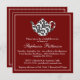 Uma cor damasco preta e branca adorna uma silhueta de um bule de chá colocada sobre um fundo rico de vermelho escuro neste design chic de chá Chá de panela. Cada linha pode ser personalizada para atender às suas necessidades.