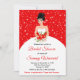 Esta chá de panela festiva e divertida apresenta uma linda noiva de cabelo preto num vestido branco de casamento com um buquê de flor de poinsettia. Ao fundo estão flocos de neve sobre um fundo vermelho brilhante. O texto combina fontes de script e sans serif para uma aparência na moda e moderna. Isto é perfeito para um Chá de panela temático de Natal ou inverno. Gráficos de Mujka