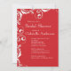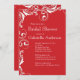Nosso belo chá de panela vermelho é o início perfeito para seu chá de panela primavera, chá de panela de verão, chá de panela de outono ou chá de panela de inverno que sua noiva e hóspede irão amar. Nossos convites de chá de panela elegantes apresentam um floreio floral branco vintage em um fundo vermelho e um fundo correspondente! Visite nosso compro para ver opções de cores adicionais neste convite para chás de casamento.