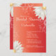 Nosso belo chá de panela de margarida vermelho laranja é o início perfeito para seu chá de panela primavera, chá de panela de verão, chá de panela de outono ou chá de panela de inverno que sua noiva e hóspede irão amar. Nossos convites de chá de panela de na moda apresentam flores brancas de margarida modernas, definidas em um fundo vermelho laranja e apresentam um retorno correspondente! Visite nosso compro para ver opções de cores adicionais neste convite para chás de casamento.