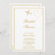 Um na moda à procura de um chá de panela moderno. Com um coração e um avião no topo, é uma excelente escolha para a noiva que vai ter um casamento de destino ou ama viagem. Em branco e ouro, tem um toque dramático. Adicione o nome da noiva, o local do chá de panela, a data e a hora. Na parte inferior você pode adicionar informações relevantes para uma resposta. Use o texto de exemplo como guia. O reverso tem bolinhas de ouro finas. Esta é parte da nossa coleção de passaportes para o casamento do amor. Isso também está disponível em outras cores.