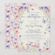 Celebre o amor com um convite sonhador que parece uma brisa de primavera. Esta design romântica apresenta delicadas borboletas aquáticas coloridas que flutuam entre flores silvestres moles em tons de pincel, lavanda e pêssego. Um script de estilo manuscrito e um layout elegante definiram o tom para uma reunião sincera. Perfeito para um chá de panela de galho, jardim ou de temas quentes.