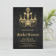 Incêndio aos seus convidados com este chá de panela elegante com um belo candelabro dourado sobre fundo negro. Basta adicionar os detalhes do seu evento neste modelo fácil de usar para torná-lo um convite de tipo único. Sacudir a placa para revelar uma textura falsa de brilho dourado na parte traseira da placa.