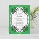 Comece seu elegante chá de casamento com nossos convites de chá de panela bonito e populares de damask verde esmeralda. Nosso chá de panela chic e na moda apresenta um quadro branco rico adornado com um lindo floreio de folha preta sobre um clássico fundo verde damask. Perfeito convite para um chá de panela elegante com uma chama vintage. Apenas personalize nosso chá de panela de tendências com suas informações de casamento e você está pronto para ir. Disponível em outras combinações de cores em nosso compro em www.celebrateitweddings.com. Veja nossas notas de agradecimento, adesivos e botões de noiva em nosso compro