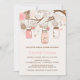 Convite vintage personalizável com ilustrações brancas de jarras pedonais, flores, cordas cardíacas e aves-vivas. O convite perfeito para eventos temáticos de jardim, vintage e chique.