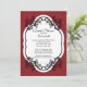Comece seu elegante chá de casamento com nossos populares convites de chá de panela bonito de máscara vermelha de marrom. Nosso chá de panela de chic e na moda apresenta um quadro branco rico adornado com um belo floreio de folha preta sobre um clássico fundo vermelho de damask. Convite perfeito para um chá de panela elegante com uma chama vintage. Apenas personalize nosso chá de panela de tendências com suas informações de casamento e você está pronto para ir. Disponível em outras combinações de cores em nosso compro em www.celebrateitweddings.com. Veja nossas notas de agradecimento, adesivos e botões de noiva em nosso compro