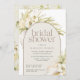 Convites de chá de panela tropicais em uma paleta de cores neutras atraente apresentam um elemento central arquivado com os detalhes do seu chá de panela, acentuado com frondes de palmeiras de cor verde-clara, folhagem de ilhas boho, orquídeas brancas, botânicos secos e gramíneas de pampas de praia.