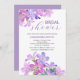 Chá de panela elegante e simples com flor de gerânio roxo rosa e texto vibrante caligráfico.