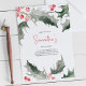 Este elegante, porém simples chá de panela de vassoura, apresenta uma pintura manual de aquarelas cor vermelha de inverno com primaveras de sagrado. O nome das noivas está escrito em uma tenda tipografia caligráfica escrita à mão num vermelho elogioso. Uma escolha moderna para o seu chá de panela de Natal ou festas de Natal. Seu design pode ser baixado convenientemente como um convite digital. Para mais convites para o casamento de Natal, visite www.zazzle.com/agape