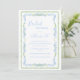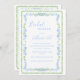 Linda cor azul-d-água, minúscula estrutura floral com estrutura verde-d-água circundando lindas fontes e scripts feitos em cores coordenadoras convite para chás de panela. Um convite perfeito para noivas para qualquer estação.
